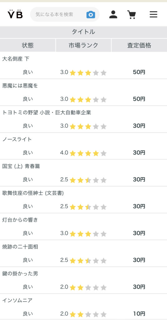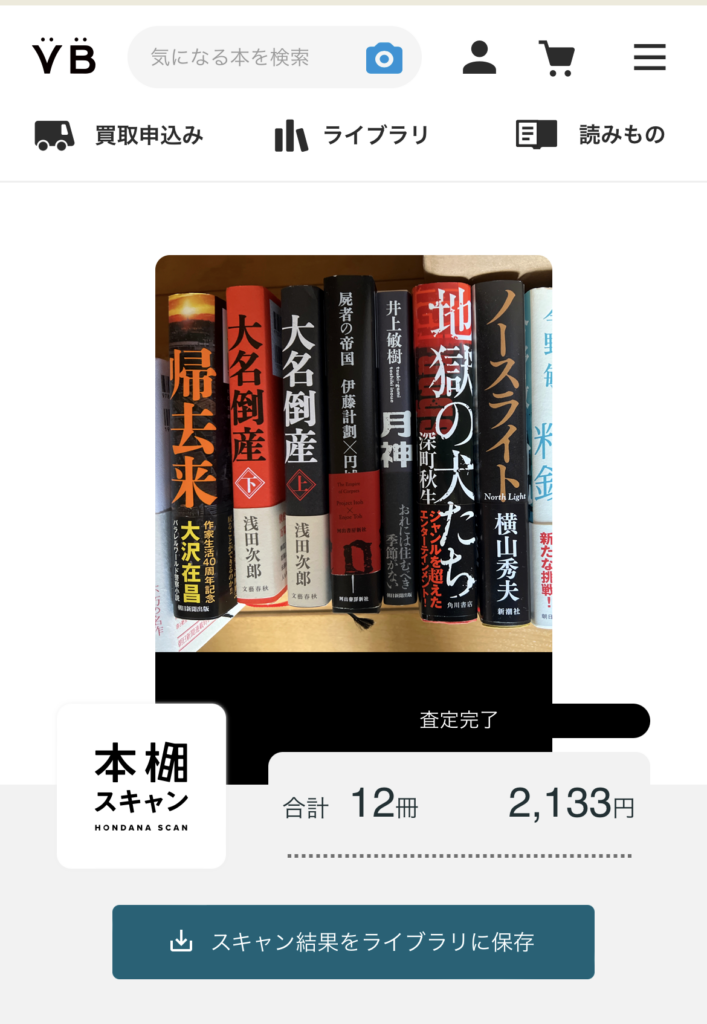 こんな感じで、本のタイトルを撮る(上の写真)と、査定結果(下の写真)が出ます↓