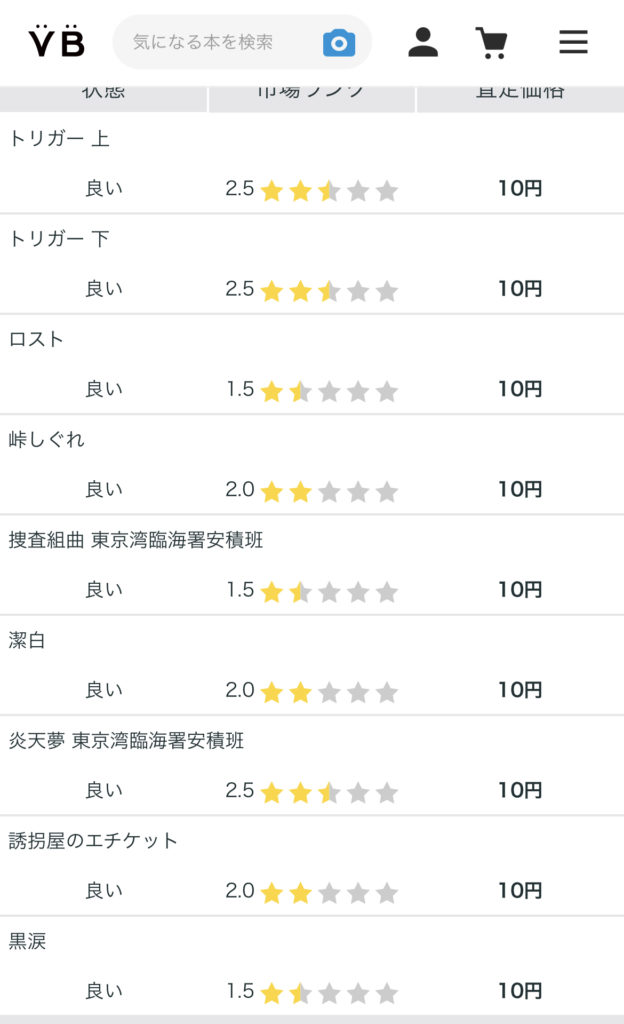 10冊は0円。10冊は10円。こうなるとブックオフと同じくらいでしょうか?