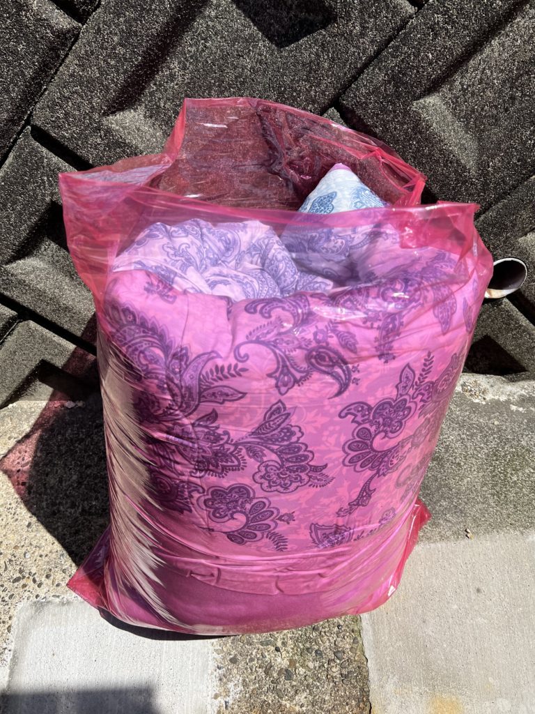 クルクル丸めて45リットルのごみ袋2つに収めることができました!